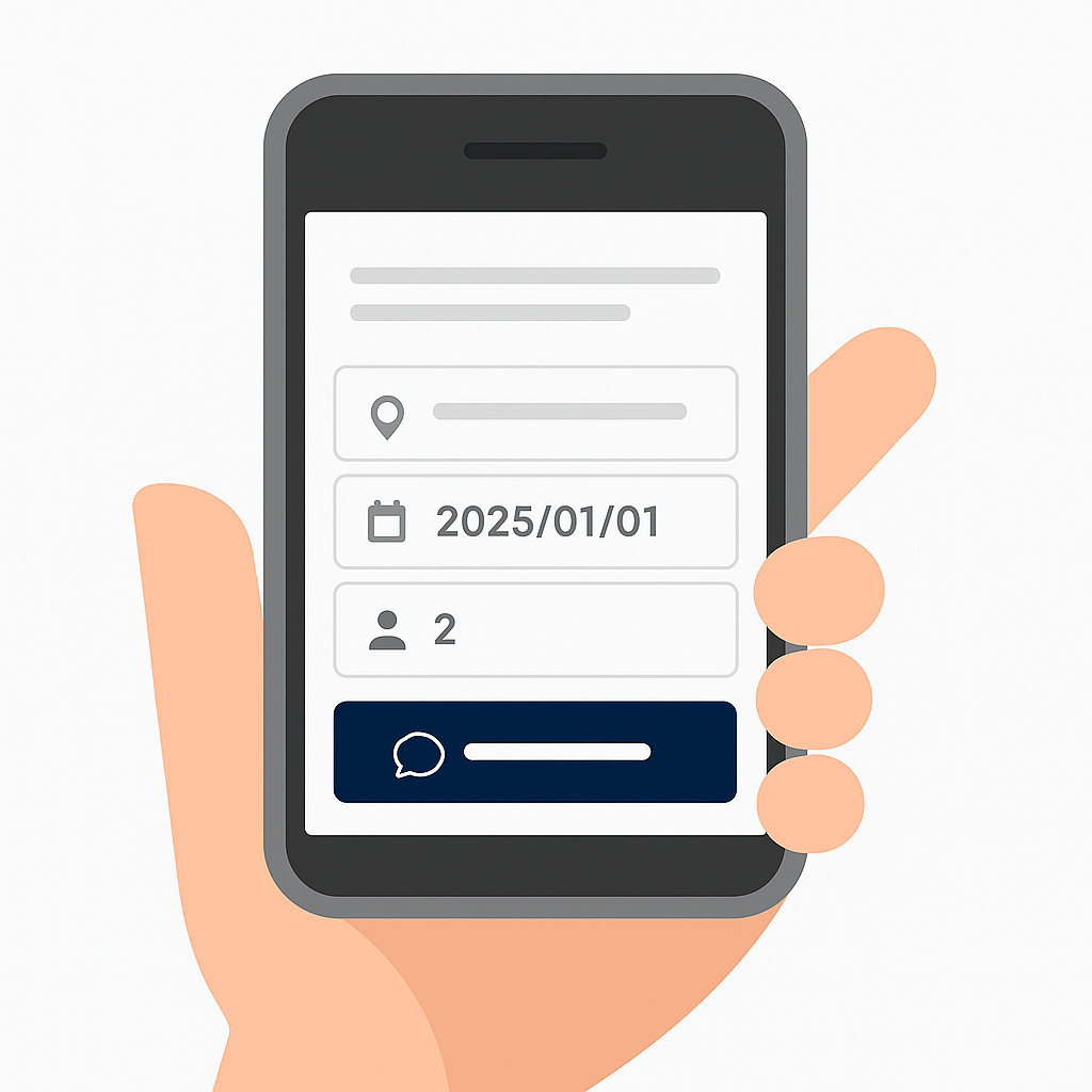宿泊先や希望日時、人数をフォームで共有すると、RecRingのAIコンシェルジュとのチャットが立ち上がります。